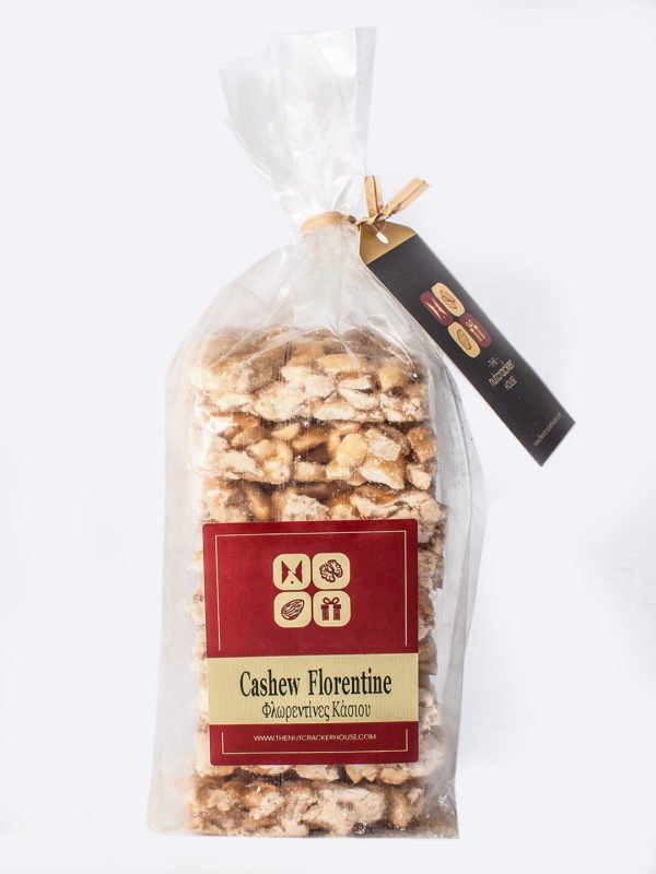 Handcrafted Cashew Florentine is a nut biscuit. Has a crunchy texture, full of hazelnut flavor. Worldwide and Cyprus delivery. Cashew Florentine nut biscuit