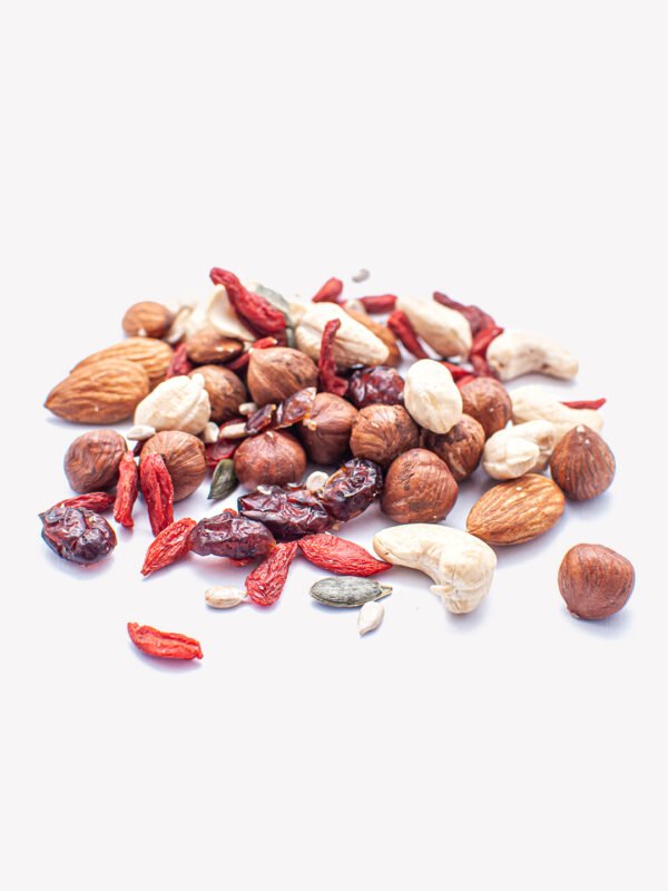 Ingredients: hazelnut, cashew, almond, goji, cranberry, pumpkin seeds, sunflower seeds.